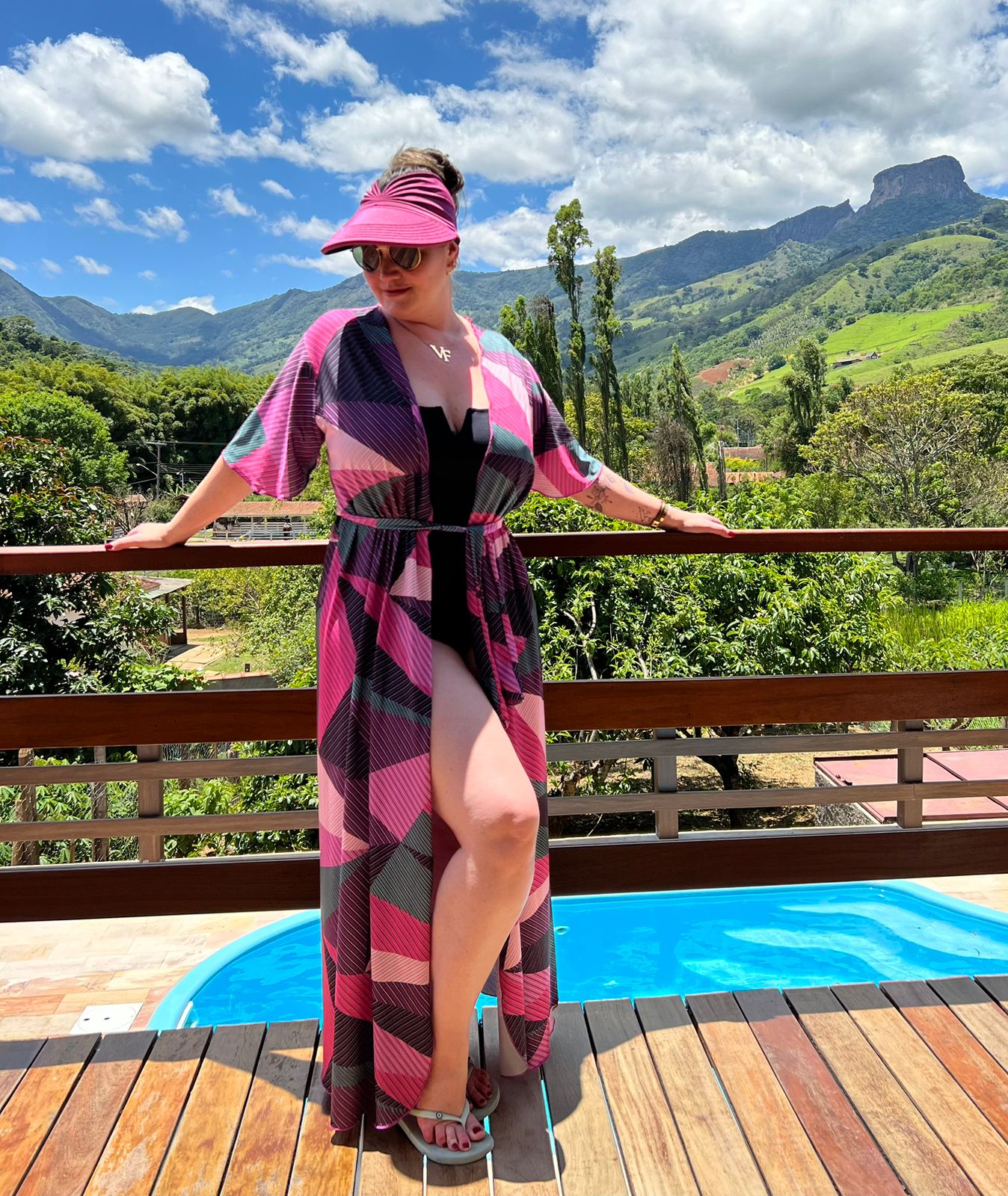 As saídas de praia longas são uma ótima opção para te acompanhar na praia ou na piscina. Nossa saída é confeccionada em fluity*, possui mangas sino, faixa fixa para amarração e comprimento longo. Ideal para complementar o look de verão, também fica perfeito para compor um visual despojado com short e blusinha.